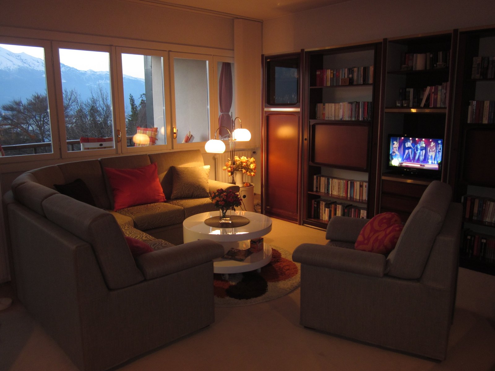 Wohnzimmer - ausgeklapptes Drehbett(Zoom durch Anklicken) |